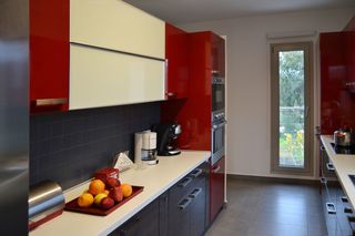 - The first level includes a fully equipped kitchen with breakfast bar, dining area, one bedroom with bathroom and an office
