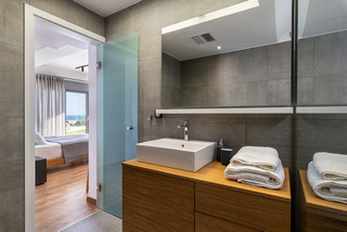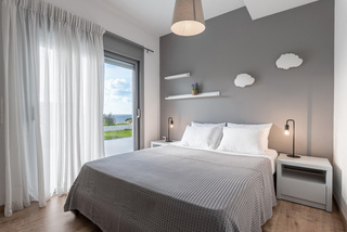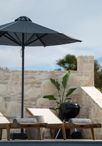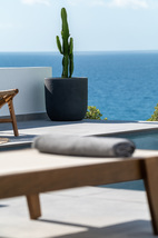 Villa Belinda lays gracefully on two spacious levels, boasting a total of 3 stylish bedrooms, hosting up to 6 guests. On the ground floor, guests will be greeted by two sumptuous double bedrooms with en-suite bathrooms, as well as a twin bedroom, all having direct access to the immaculate exterior of the property. On the second floor, the magnificent living area and the fully-equipped, modern kitchen are constantly filled with natural light through the floor-to-ceiling windows that open up to the exceptional, furnished terrace, perfect for enjoying endless hours of relaxation and taking in the enthralling scenery. The meticulous attention to detail and the soft, earthy shades of the interior create an ambiance of upmost serenity.