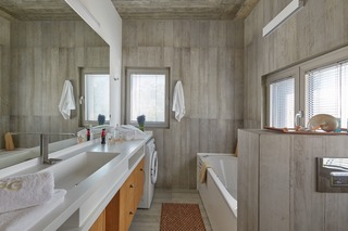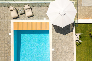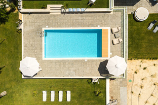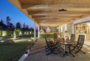 The outdoor area of this villa presents an idyllic retreat, perfectly suited to accommodate intimate gatherings like weddings, birthdays, and anniversaries, imparting an air of sophistication and allure to any memorable event. At its heart lies a pristine 50 sq.m. ecological swimming pool which can be heated upon request, featuring a counter-current swimming system and hydro massage, providing both relaxation and fitness opportunities. The pool can be covered to maintain an appropriate temperature and ensure child safety. An outdoor shower, offers a refreshing respite, while nearby, thoughtfully arranged sitting and dining areas provide the perfect setting for leisurely meals. A fully-equipped charcoal barbecue area, complete with a wood oven and a sink stands ready for culinary endeavors. Surrounding it all, a meticulously landscaped garden envelops the space in natural beauty, offering a tranquil ambiance for leisurely strolls. Among the array of facilities provided, a parking area provides convenient access for guests, adding to the overall convenience and ease.