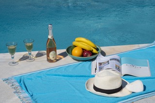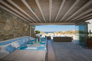 The villa's outdoor realm features an impressive private swimming pool surrounded by comfortable sun loungers, offering total post-dip relaxation. A spacious terrace with a pergola-shaded dining area, a cozy sitting area, and a built-in BBQ are the ideal areas for sunset soirées and moments of al-fresco enjoyment. Ideally suited for all-day recreation, this sublime property offers plenty of spaces to socialise, eat or enjoy the Greek sun, allowing guests to embrace the coastal lifestyle.